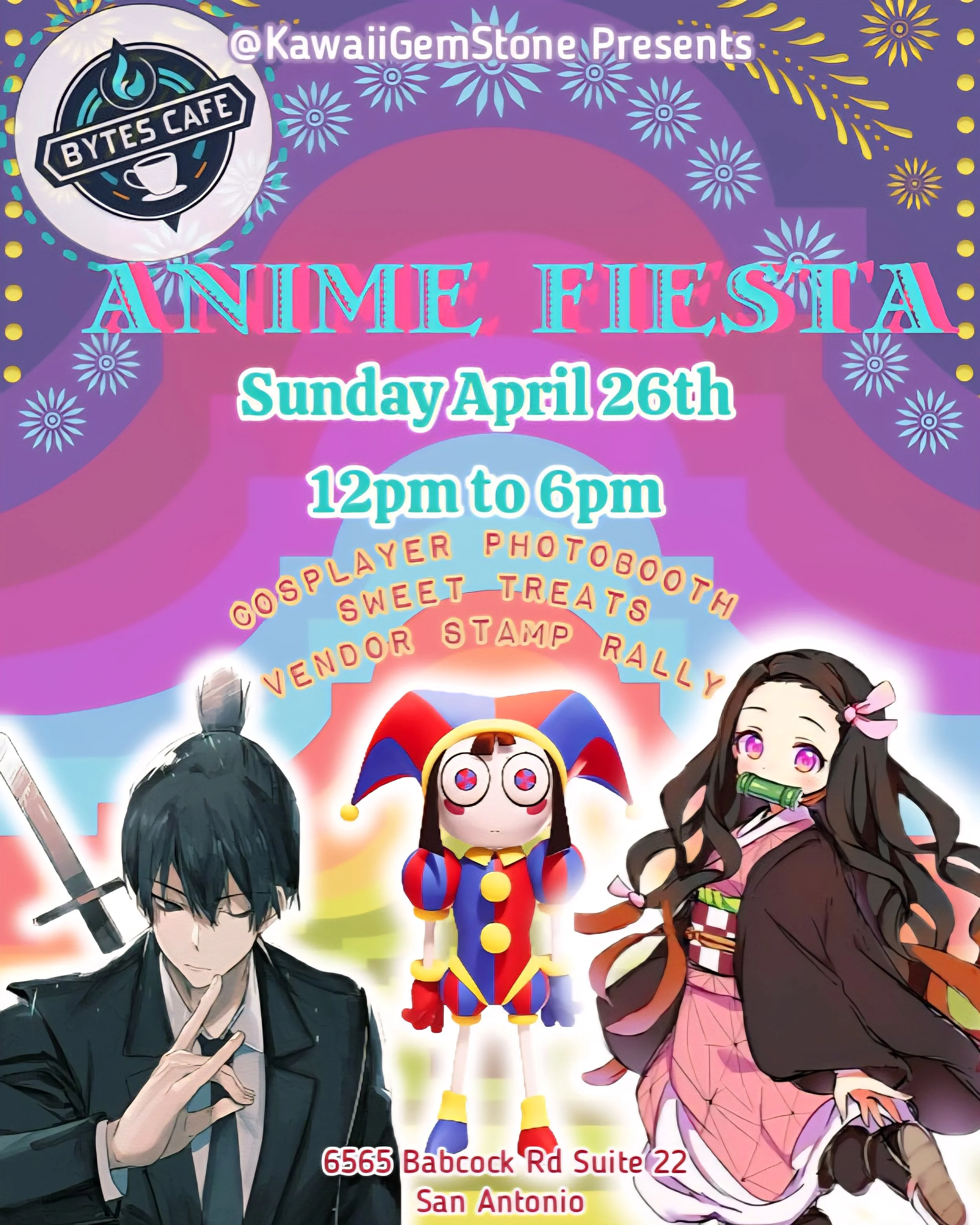 Calling all cospalyers, Anime fans, coffee/matcha lovers, and comminity members who value small businesses! Beat the Over crowded chaos of downtown and enjoy an unforgettable Anime Fiesta with us at Bytes Cafe! Grab lunch, play some games, and take photos with amazing local cosplayers!