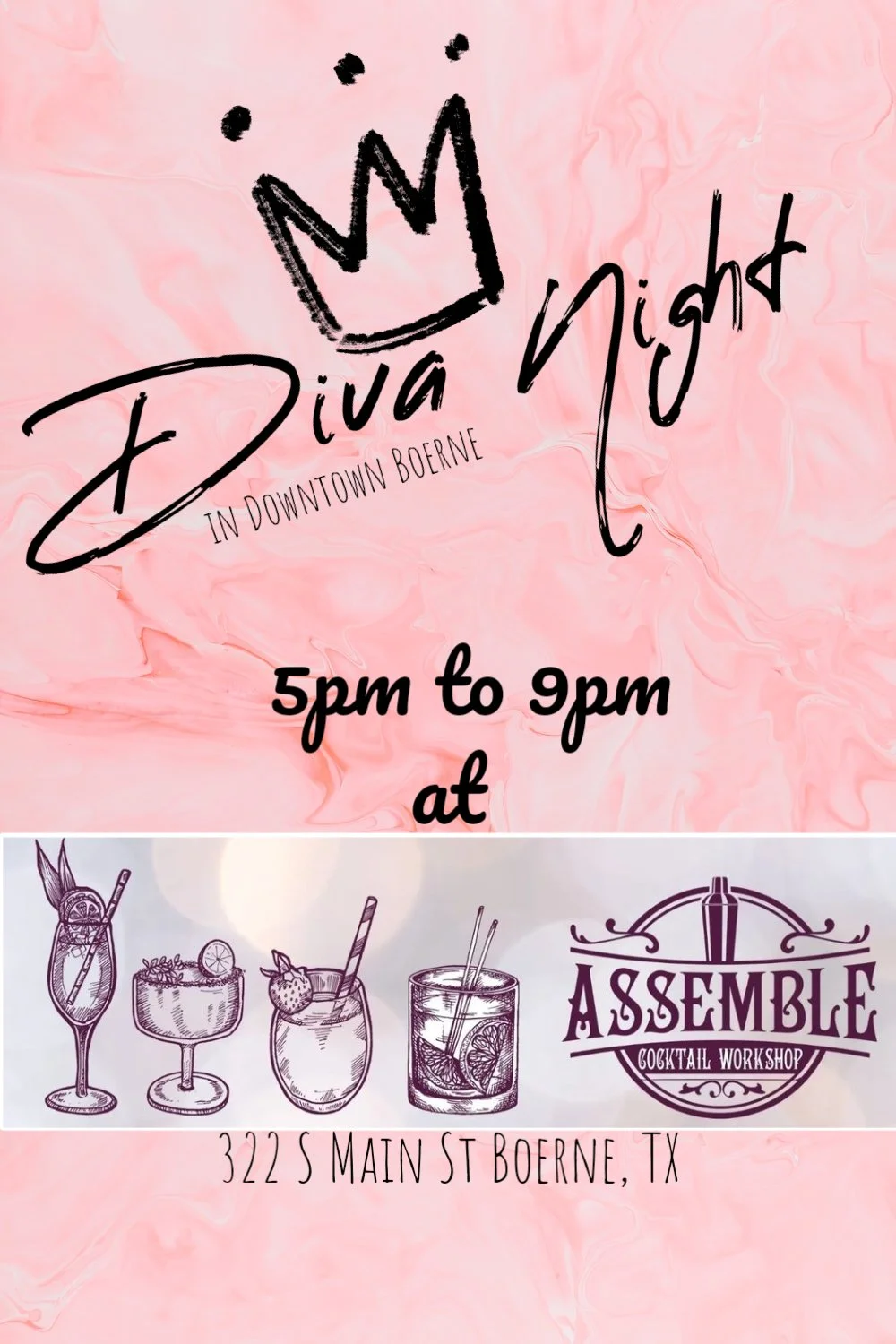 Come enjoy Diva Night in Boerne! Shops stay open late and host an array of events to entertain and entice the ladies of the Hill Country as they frolic and enjoy a Ladies Night! I will be set up outside of an Amazing local business called Assemble Cocktail workshop, an awesome place that hosts classes on how to make delicious cocktails, as well as offers private bartending services. I will have all of my best and brightest items available for purchase and of course can answer questions about cocktails too!