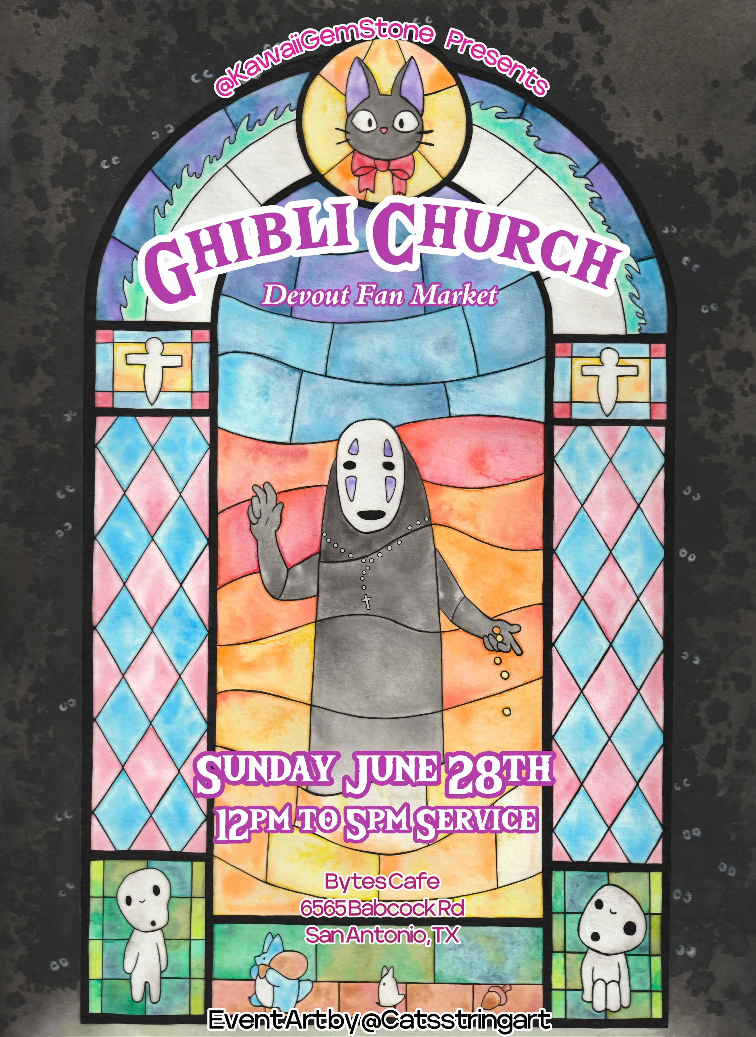 Enjoy themed menu items, serene Ghibli Cafe Vibes, and all the most amazing Ghibli inspired creations and artwork from local San Antonio Small Business Vendors! We are going to have it all, and trust me, you don’t want to miss this Service!