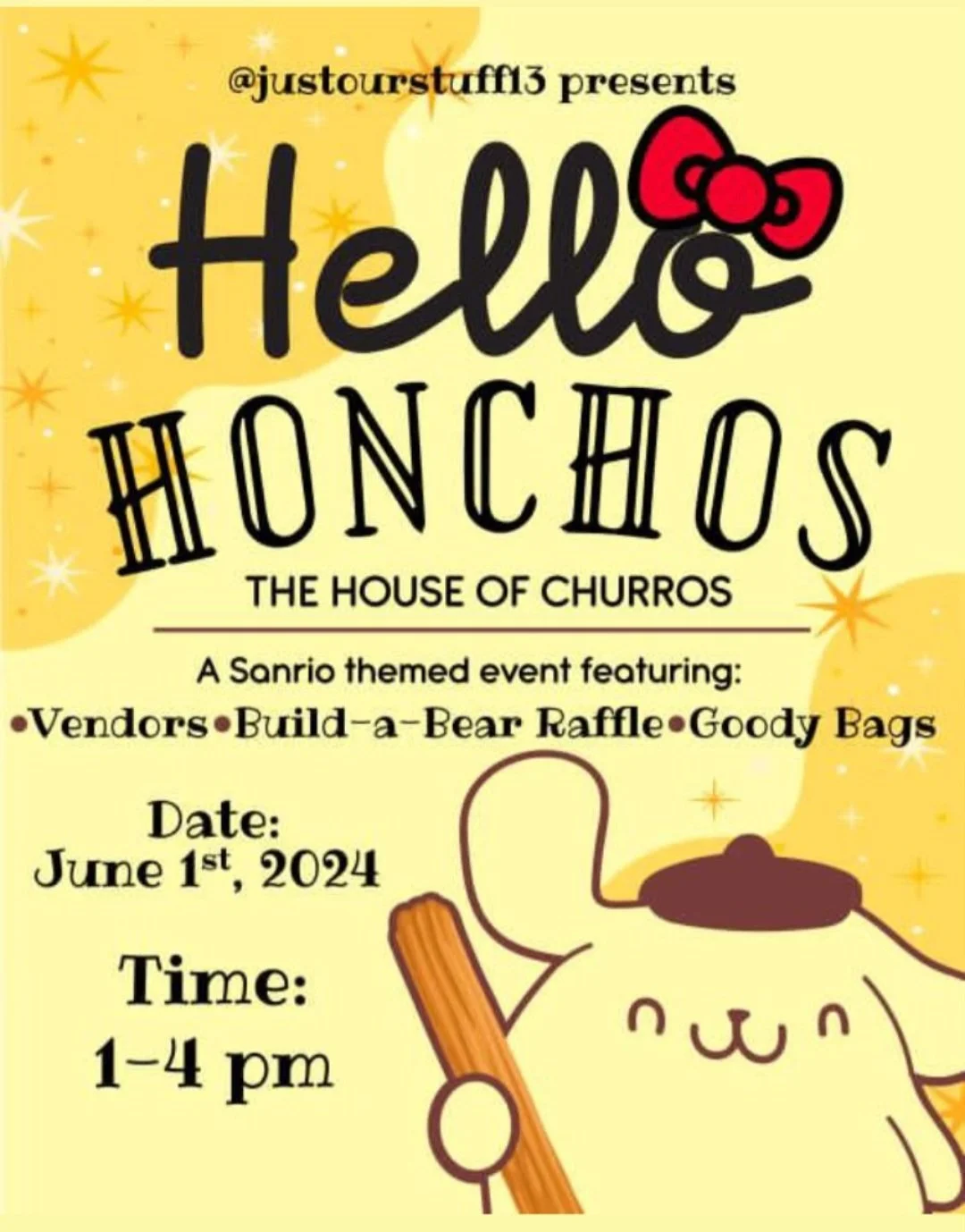 Come one, come all! This Hello Kitty themed market features exclusive vendors at a brand new location! Honchos serves up fresh, fluffy churros, delicious drinks, and now will host a cute Hello Kitty Market! I will have earrings, keychains, and more all fitting the theme! Come by for a great time!