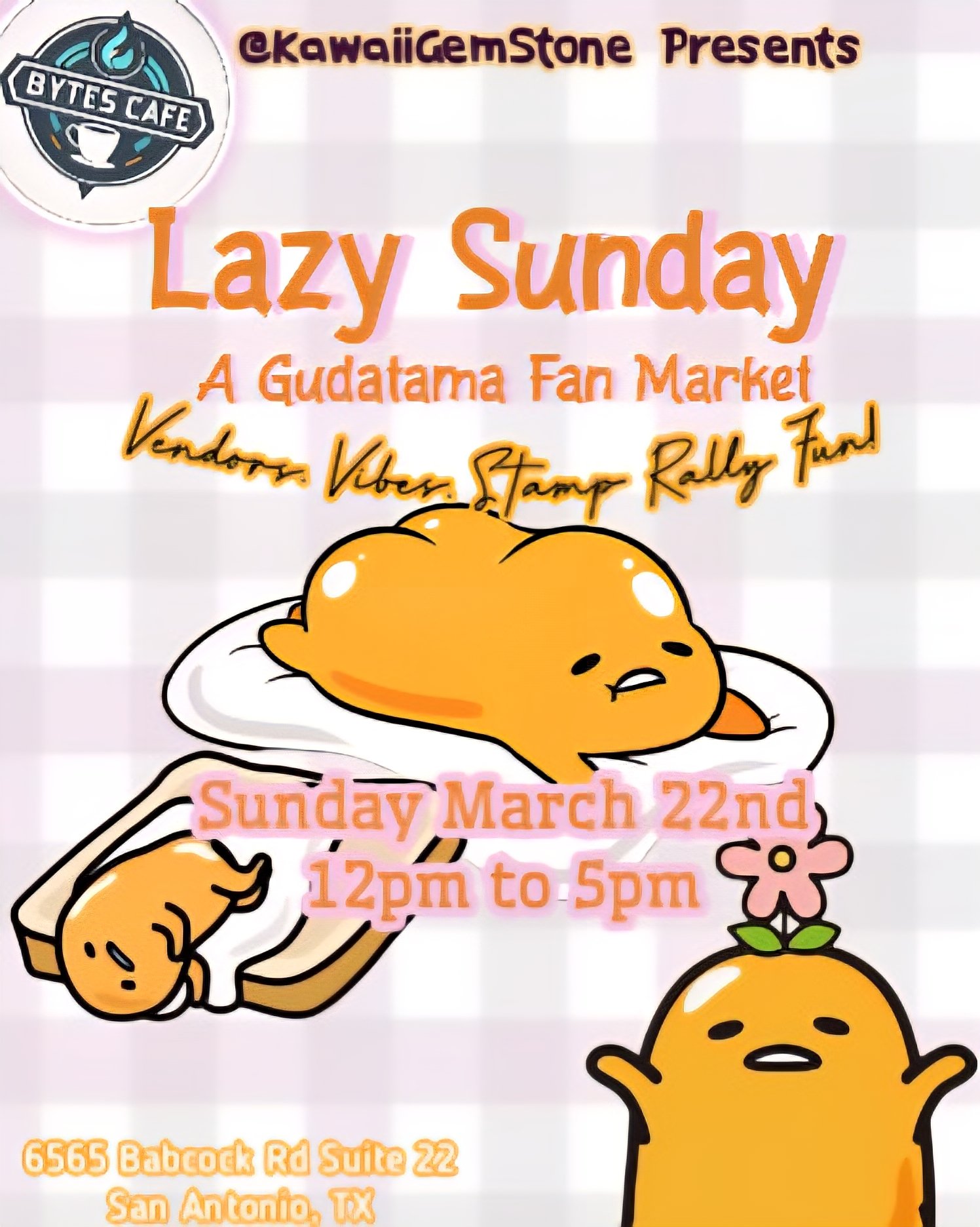 “ehhhh….don’t sleep in too long.” Roll out of bed in your comfiest fit and roll on over to Bytes Cafe for our Lazy Sunday: a Gudetama Fan Market. Shop from local artists and supoort small businesses, all bringing their best and laziest little egg inspired creations and trinkets! Everything from crochet, to jewelry, to charms.