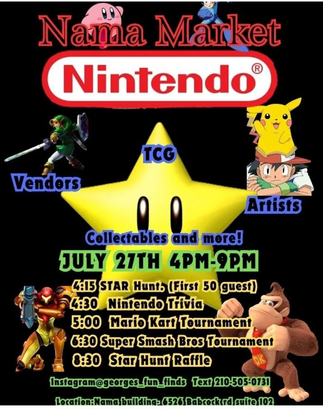 Come for an evening of Nostalgia, Ramen, Games, and all things Nintendo! Shop local vendors, play trivia, and play the Mario Kart and SuperSmash Tournaments (Both of which I may have to join in! Two of the best games ever!).