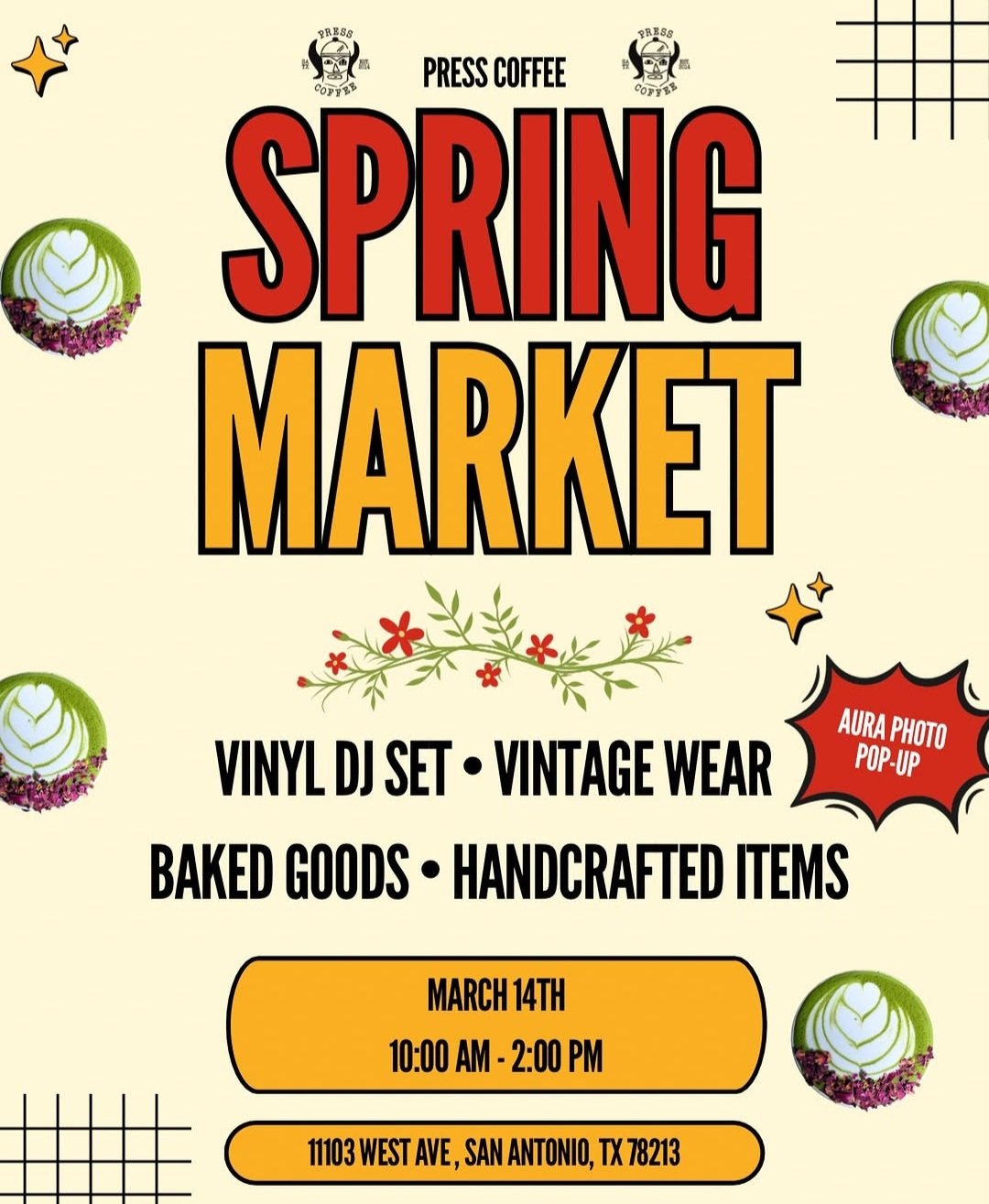 Spend the perfect morning with us at Press Coffee off West Avenue. Grab that morning pick me up, sip and then Shop local small business vendors! Grab anything from baked goods to my handmade surreal elegance!