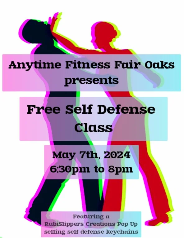 Need to brush up on your self defense skills, or learn some new ones? Come to Anytime Fitness Fair Oaks for a FREE Self Defense Class! The class runs from 6:30pm to 8pm but I will have my mini pop-up there early!