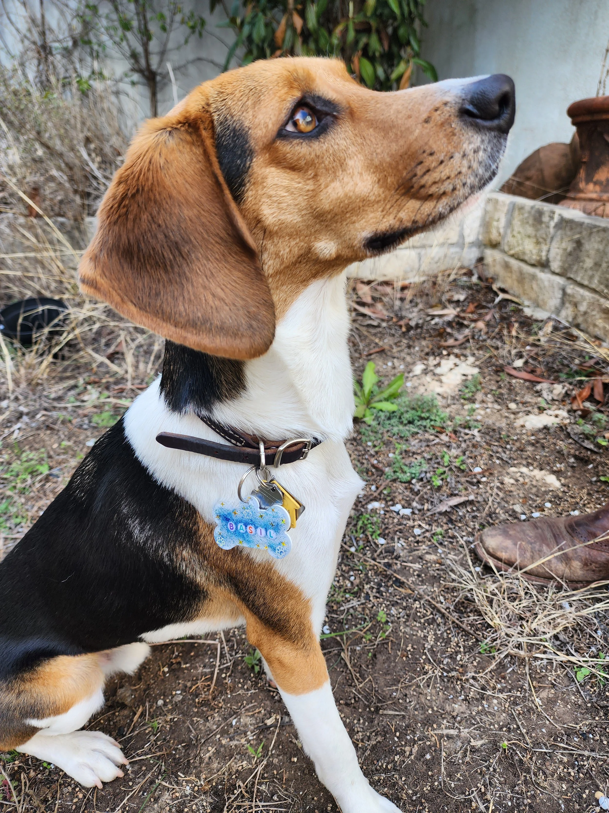 Photo 2: This handsome boy needed a new name tag and his pet parents wanted something durable and unique! I think he certainly ended up looking dapper with his new shiny name tag!
